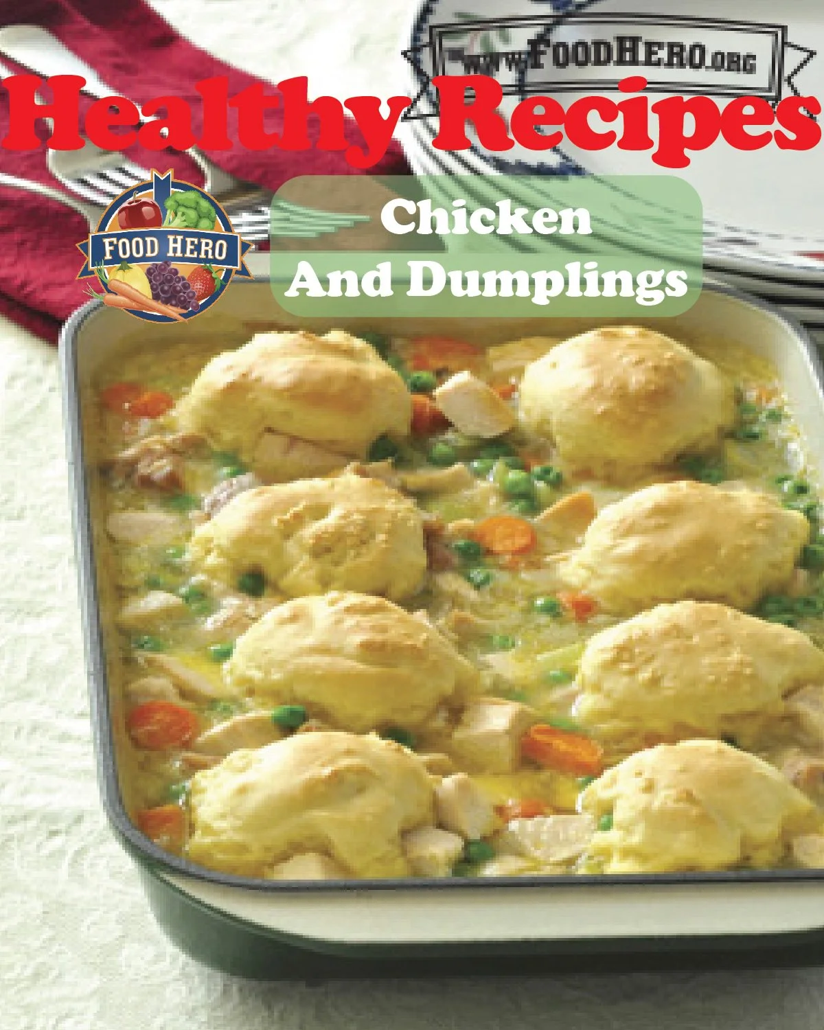 Pour the chicken mixture into a lightly greased casserole dish. Drop dumpling dough by spoonfuls onto chicken mixture (makes about 8 dumplings).